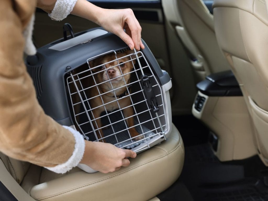 - キャリーバッグやクレートを活用:特に小型犬や中型犬には、キャリーバッグやクレートが効果的です。安定したスペースを確保し、犬がリラックスして過ごせる環境を整えましょう。急な動きに対応できるように固定することも忘れずに。犬を車に乗せる場合、この方法が一番確かだと考えます。